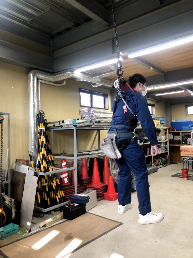 新入社員教育 実技練習(ハーネス吊り下がり)