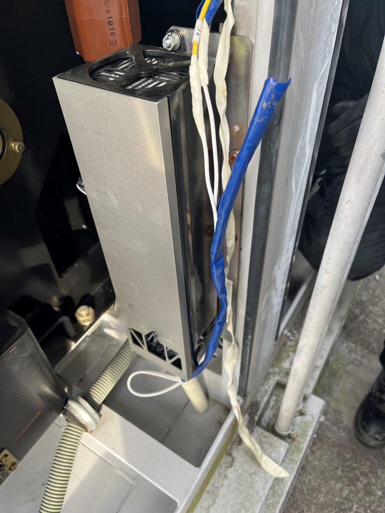 バンロムを取り替えていく際には、まず電源を切り離す必要があります。「スペースヒーター電源」というのがありこれをOFFにするとバンロムも電源がなくすことができるのですが、今回のバンロムはヒーターの所に繋がっていなかったため、大元の線を切り離して、電源を切りました。