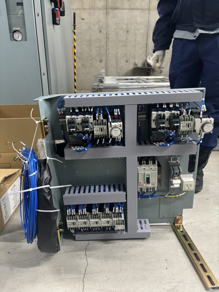 今回は33kvのLEXYの電装品を行いました。前回は補助として行わせてもらいましたが、今回はメインで作業を行いました。最初に警報を外しと一緒にDC、ACの電源を切り離しておきます。この切り離す場所は狭いので短絡、地絡に気を付けながら切り離しました。パネルごと取り替えるので内線側の電圧がないことを確認します。一部電圧があるところもあるので防護は確実に行っておきます。電圧の確認ができたら、ひたすら線を取り外します。外すときはビスが舐めないように気を付けて外します。