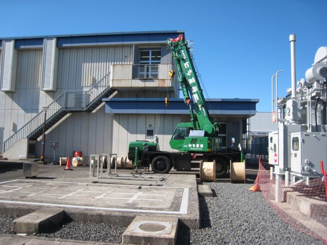 変電所建屋の2階に総重量300kgの保護盤を運搬します。