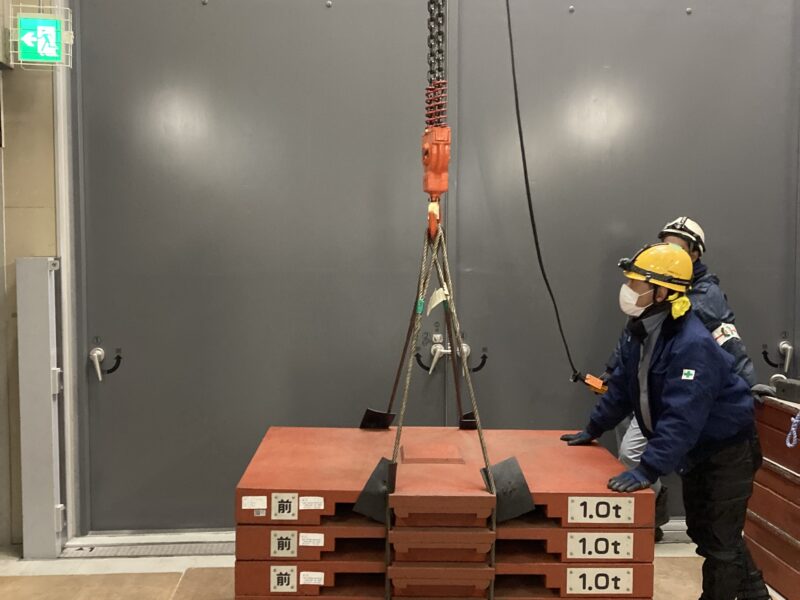 荷重試験では、試験用のウェイトが変電所に置いてあり、