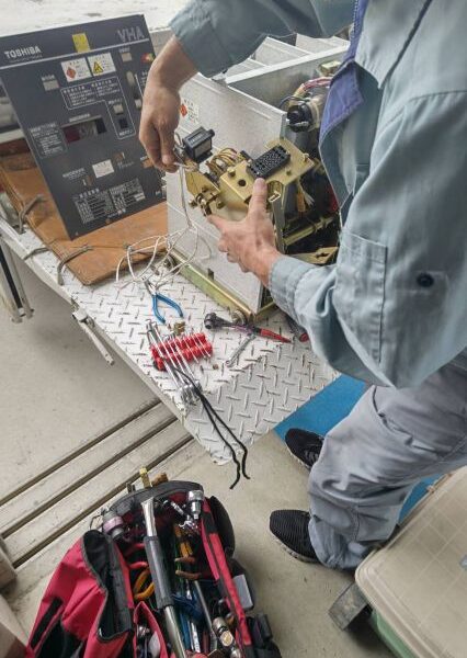 変電所には滅多にないVCBで、民間の高圧設備によくあるVCBでしたが、