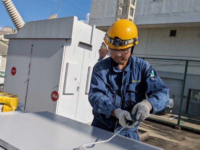 工場内の特高変電所の電気設備を塗装してほしいとのことで、