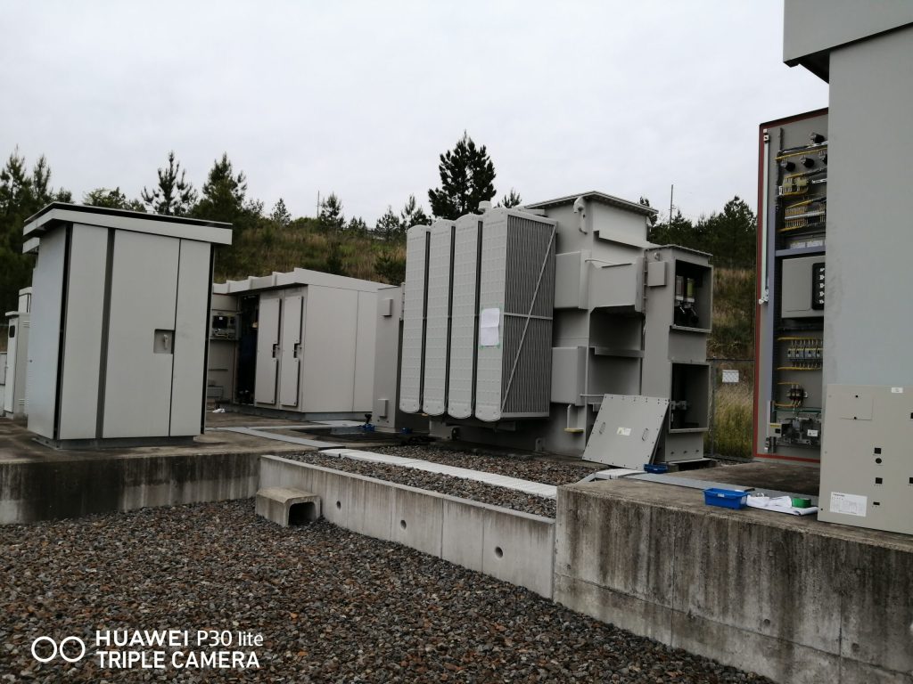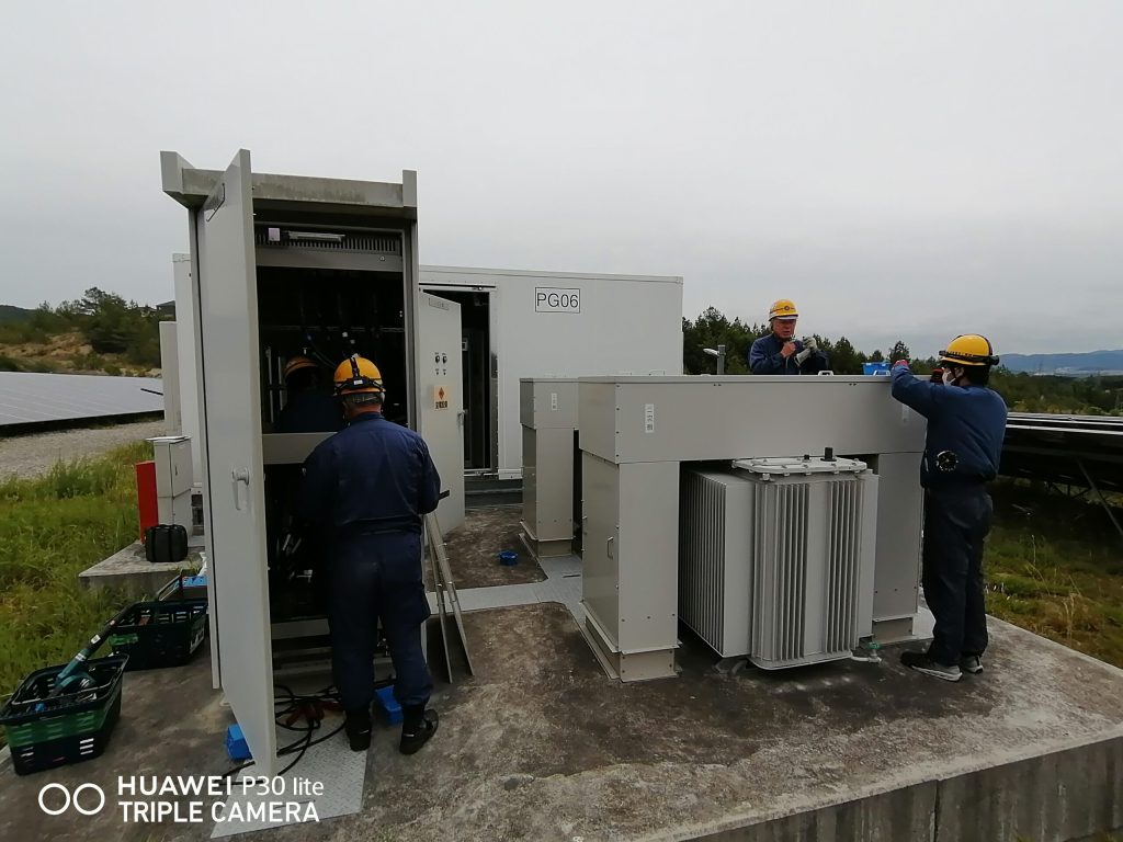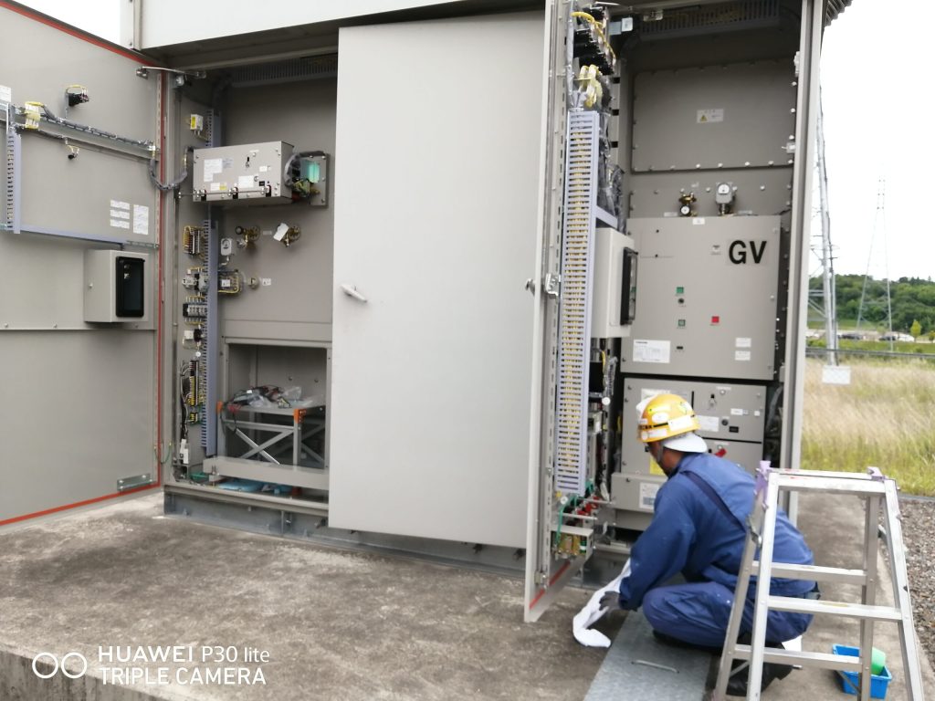 特高の連系変電所に併せて、中間変電所のパワコンも点検施工しています。