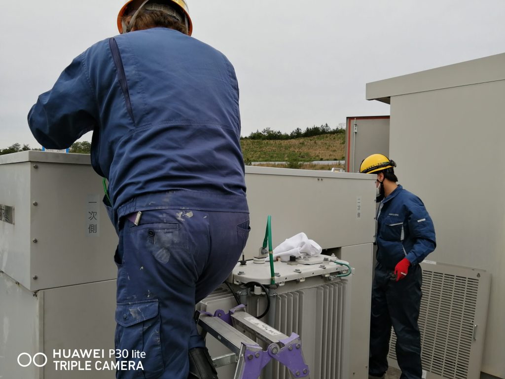 岐阜県メガソーラー お客様の声と定期点検  -12名で電気設備の点検を行いました