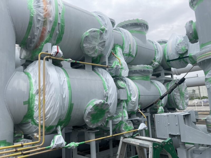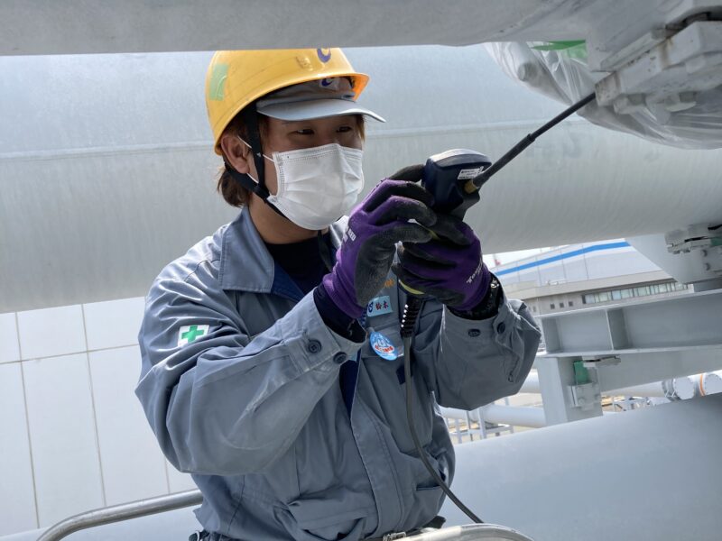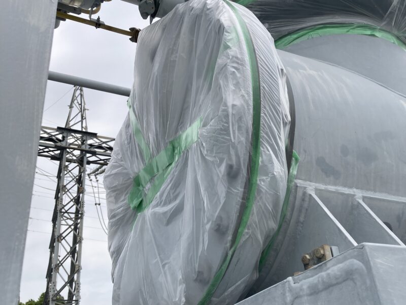SF6ガスは空気よりも重たいため、マスカーテープにてフランジやガス配管のつなぎ目を覆い、時間を置いてからSF6用ガスリークディテクタにて測定します。