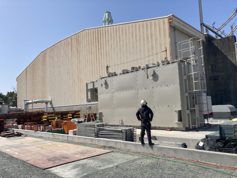 超高圧の変圧器なため、現地にて鉄の塊のような巻線部分を据えてから、順次組み立てていく作業です。
