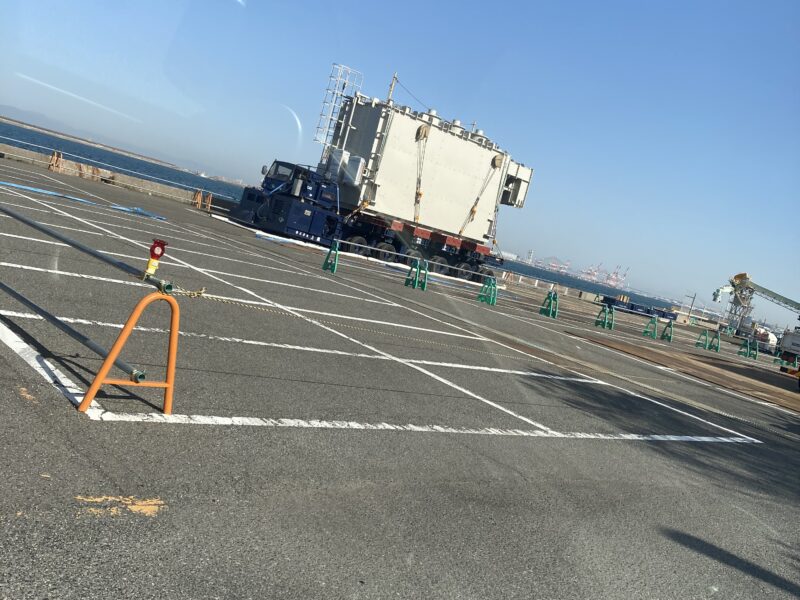 今回は、まず変圧器を船にて輸送、搬入、通称コロ引きを行いました。